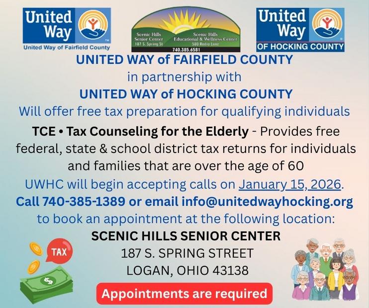 In addition to activities and social events we also offer Medical Transportation for appointments, to Seniors of Hocking County, who are 60+ years old. For additional information call 385-6581
